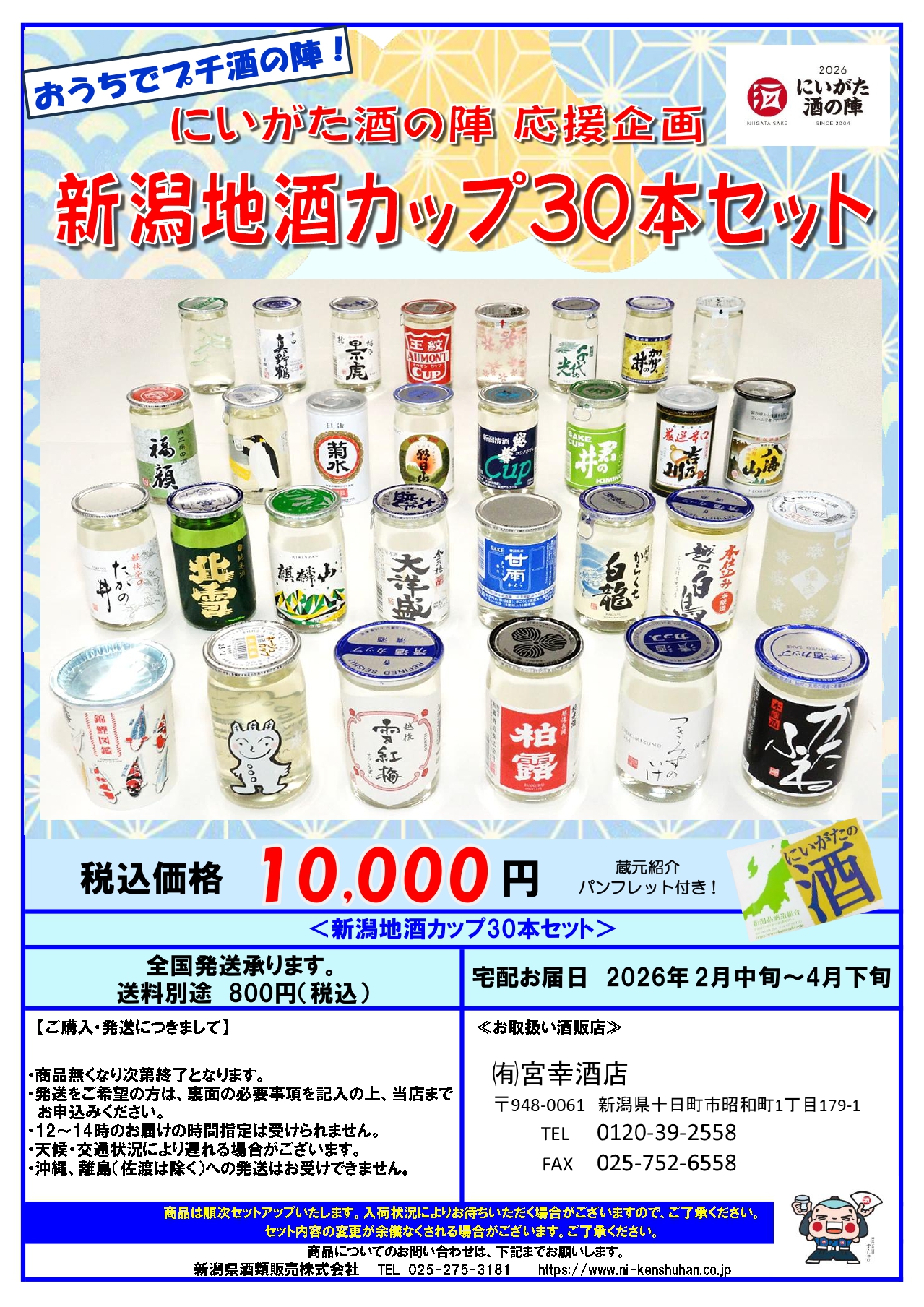 FEB 25 2026 お知らせ おうちでプチ酒の陣! にいがた酒の陣 応援企画 新潟地酒カップ30本セット‼ ご注文は、オンラインショップへ Tweet Share お知らせ 松乃井酒造場 純米大吟醸「英保」 ...